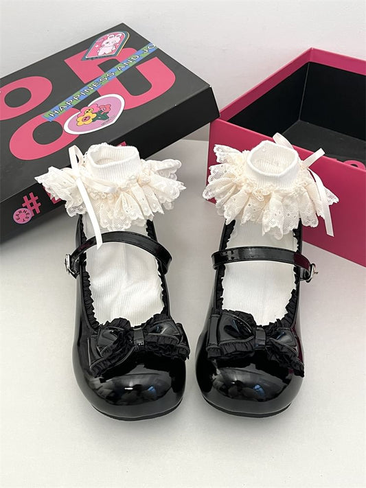 Low Heel Two Tone Bow Accent Faux Leather Mary Jane Shoes