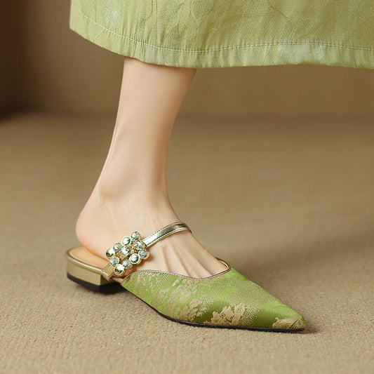 Low Heel Square Toe Rhinestone Velvet Pumps