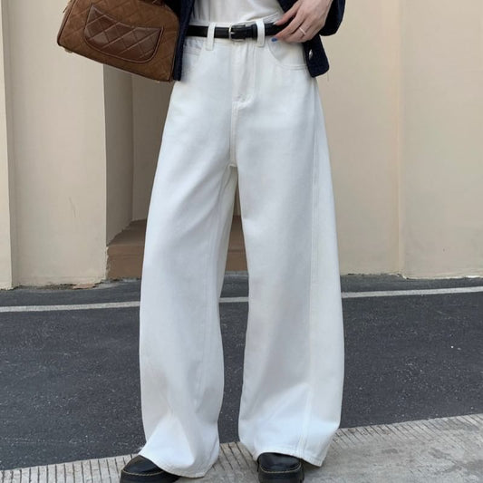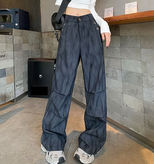 Low Waist Washed Straight-Fit Wide-Leg Jeans