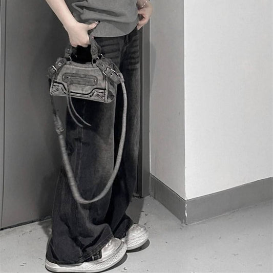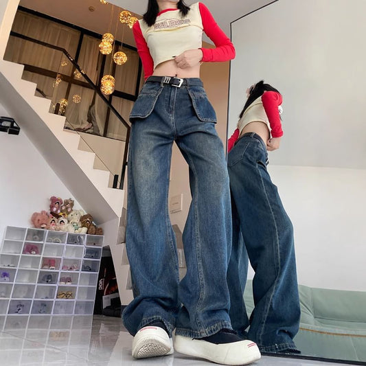 Mid Waist Washed Wide Leg Jeans (Various Designs)