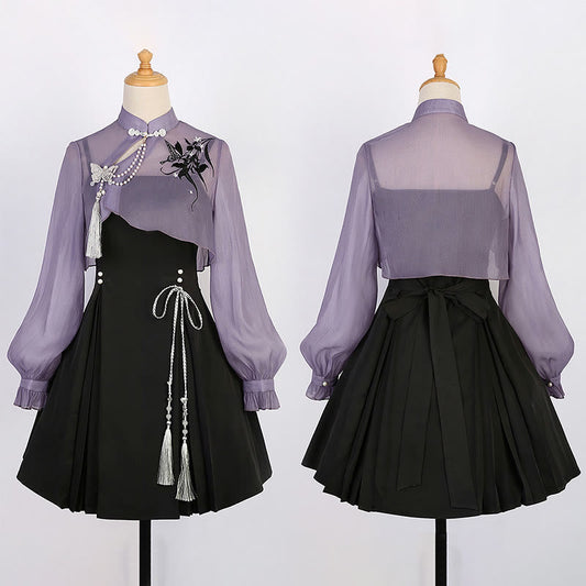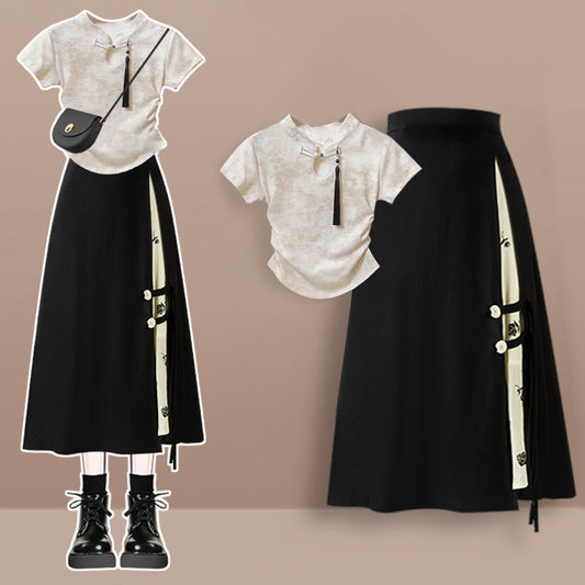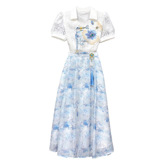 Print Skirt Embroidery Set Tassel Shirt Flower