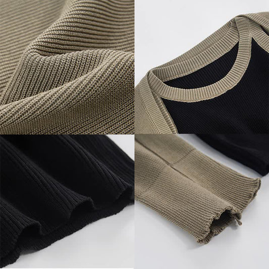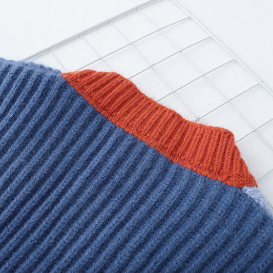 Collar Wide Casual Sqaure Sweater Colorblock Pants Leg