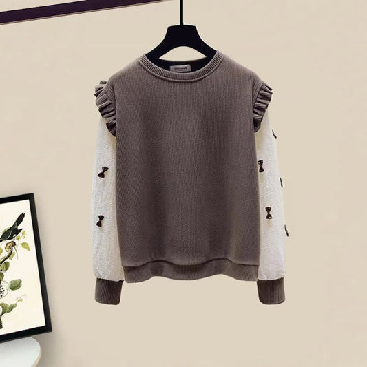 Brown Bow Shirt Knot High Skirt Sleeve Waist