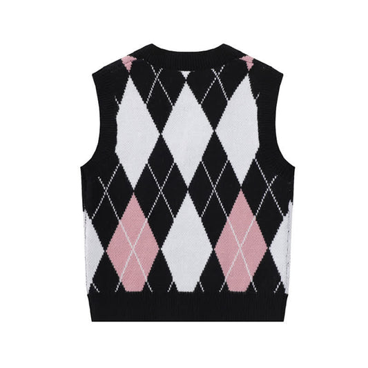 Skirt Pink Sleeve Pleated Rhombus Print Shirt Long Vest