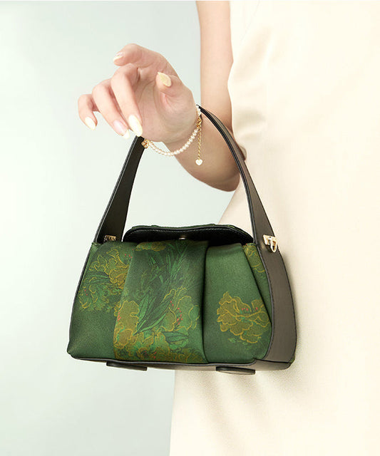 Green Style Silk Print Chinese Tote Versatile Handbag