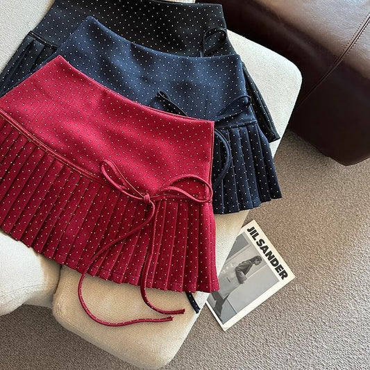 Pleated Buckle Lace-up Shirt Vintage Skirt
