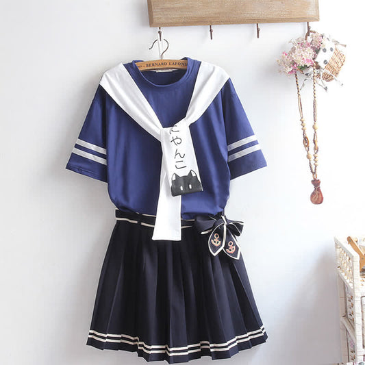 Couple JK Uniform Sailor Collar Dress T-Shirt Pants