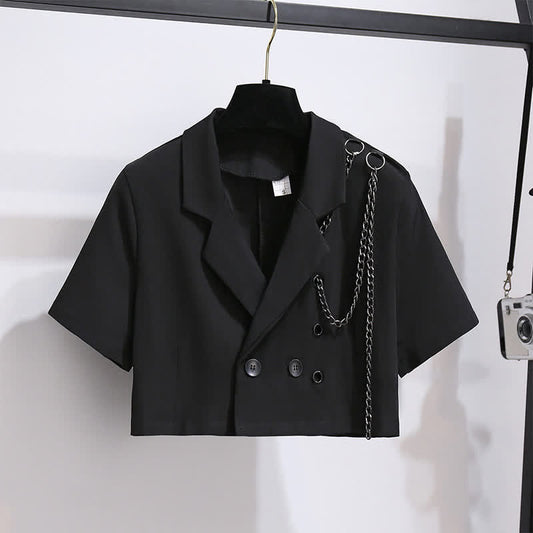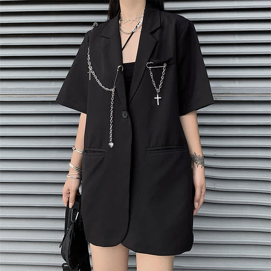 Gothic Pure Color Lapel Blazer Wide Leg Chain Cargo Shorts
