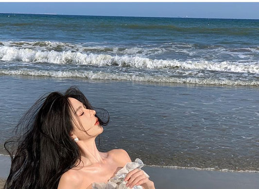 Strapless Asymmetrical Plain Ruffled Slit A-Line Evening Gown