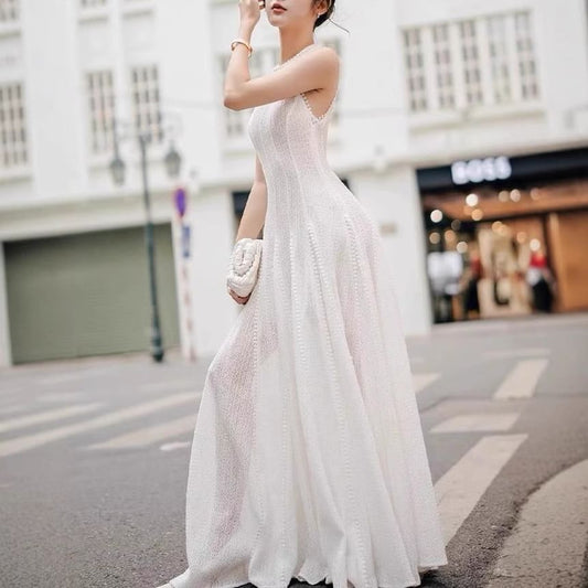 Sleeveless Crew Neck Lace Maxi A-Line Evening Gown