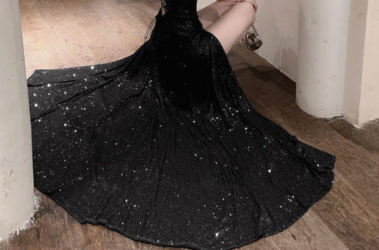Spaghetti Strap Plain Sequin Satin Sheath Evening Gown