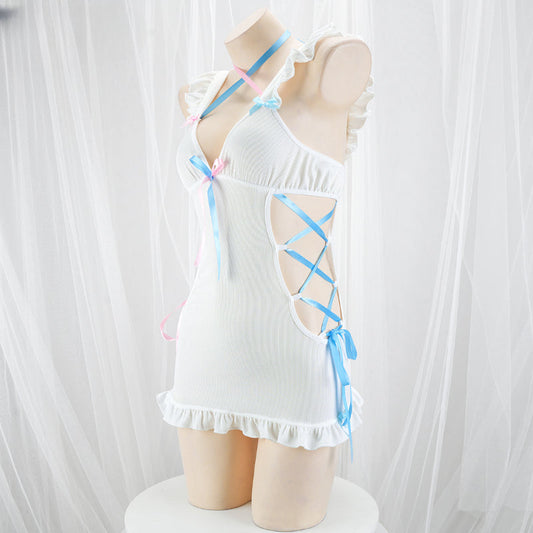 White Lace Up Pink Blue Open Sides Sweet Dress ON903