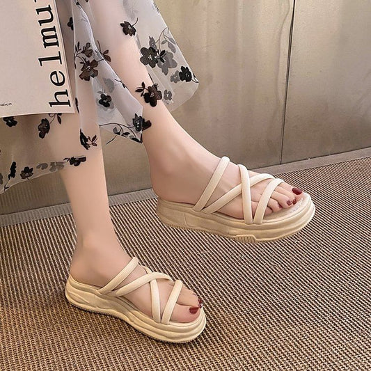 Flower Toe Loop Strappy High Heel Slide Sandals