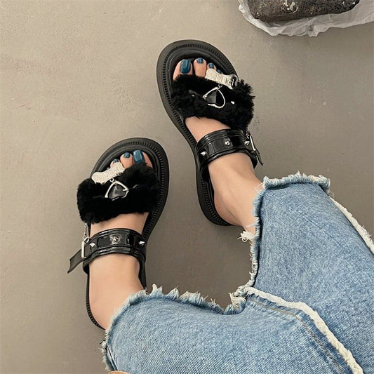 Butterfly Detail Strappy Chunky Heel Slide Sandals