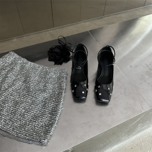 Square Toe Studded Hidden Wedge Mary Jane Shoes