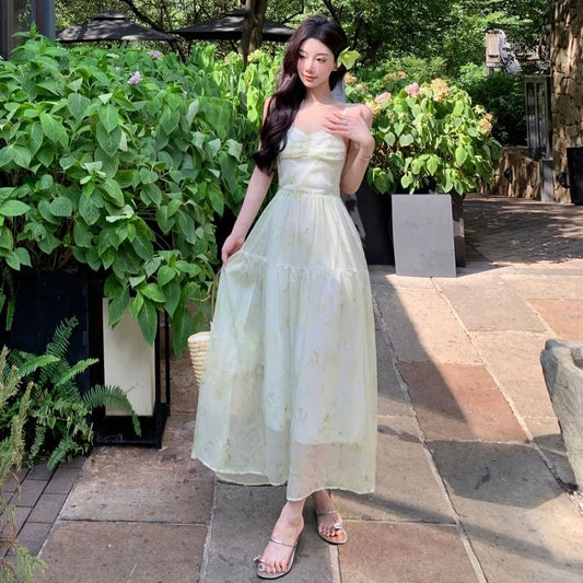 Halter Floral Ruffle Side-Slit Midi Sundress
