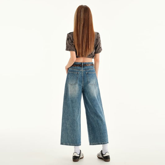 High Rise Plain Wide Leg Jeans (Various Designs)