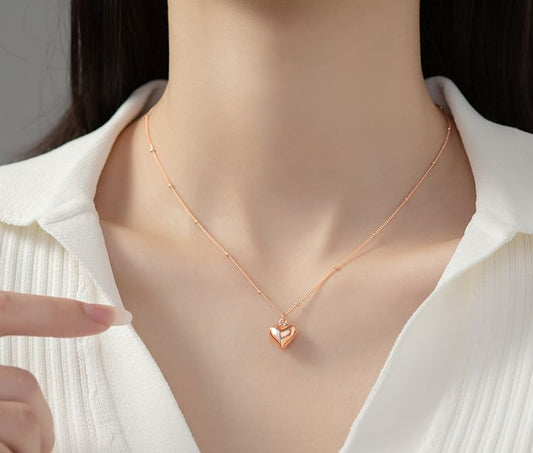 S925 Sterling Silver Heart Rhinestone Pendant Necklace