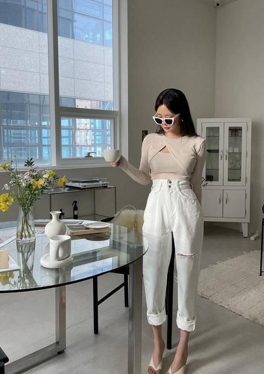 Long-Sleeve Halter Neck Mock Two-Piece Plain Slim Fit Crop Tee