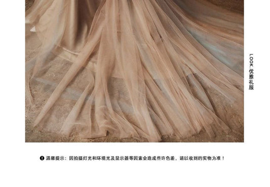 Short-Sleeve Square Neck Mesh Evening Gown