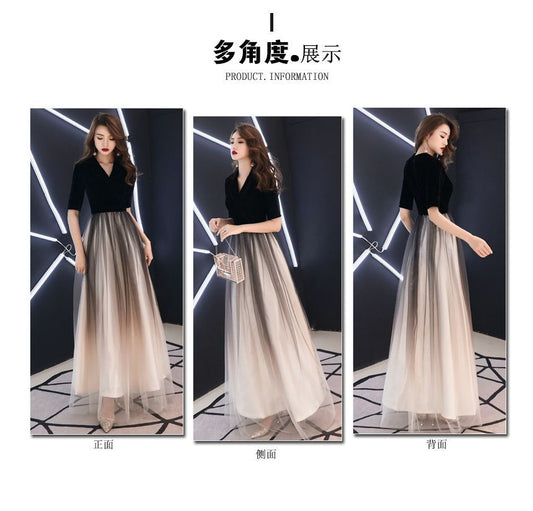 Short-Sleeve V-Neck Ombre A-Line Evening Gown