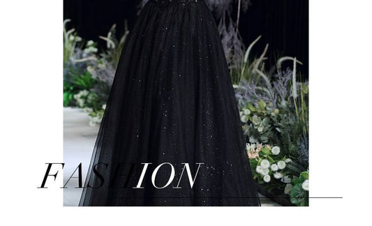 Off-Shoulder Floral Glitter A-Line Evening Gown