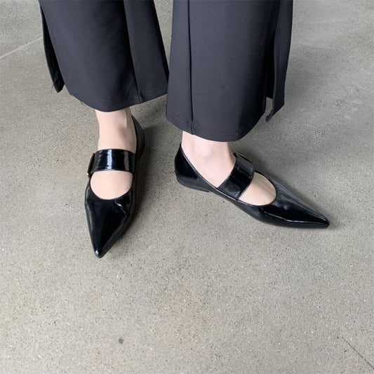 Pointed Toe Rhinestone Buckle Mary Jane Shoes