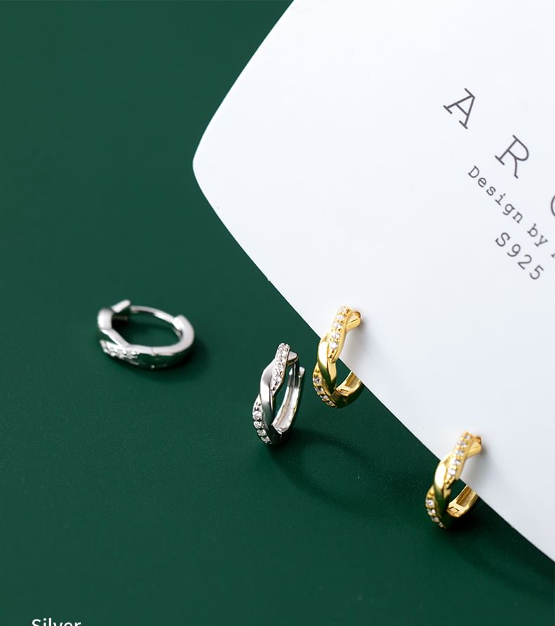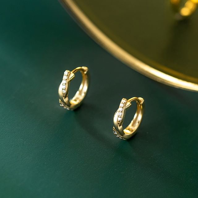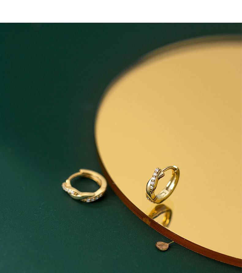 925 Sterling Silver Twisted Rhinestone Huggie Earring