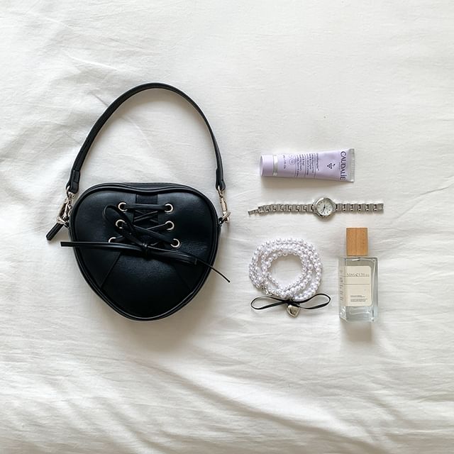Chain Strap Heart Shaped Lace-Up Faux Leather Crossbody Bag