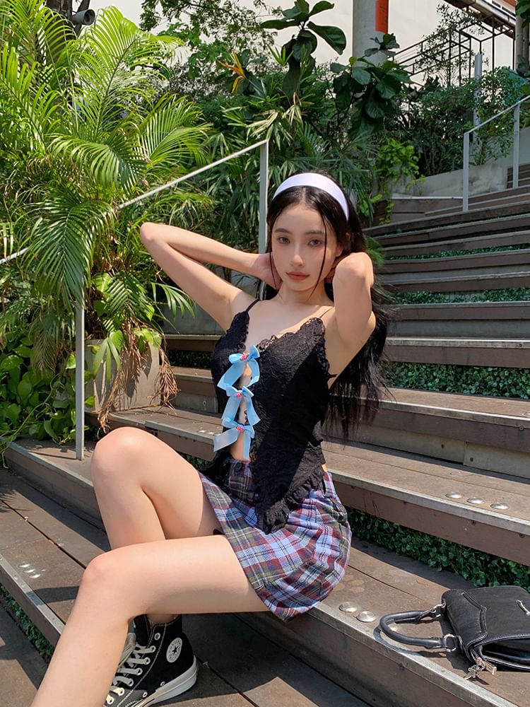 Skirt Waist Print Sweet Pleated High T-Shirt