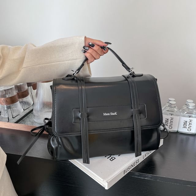Lettering Faux Leather Backpack
