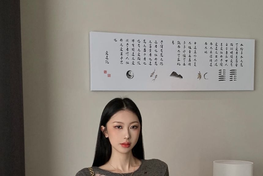 Long Sleeve Crew Neck Plain Distressed Knit Top