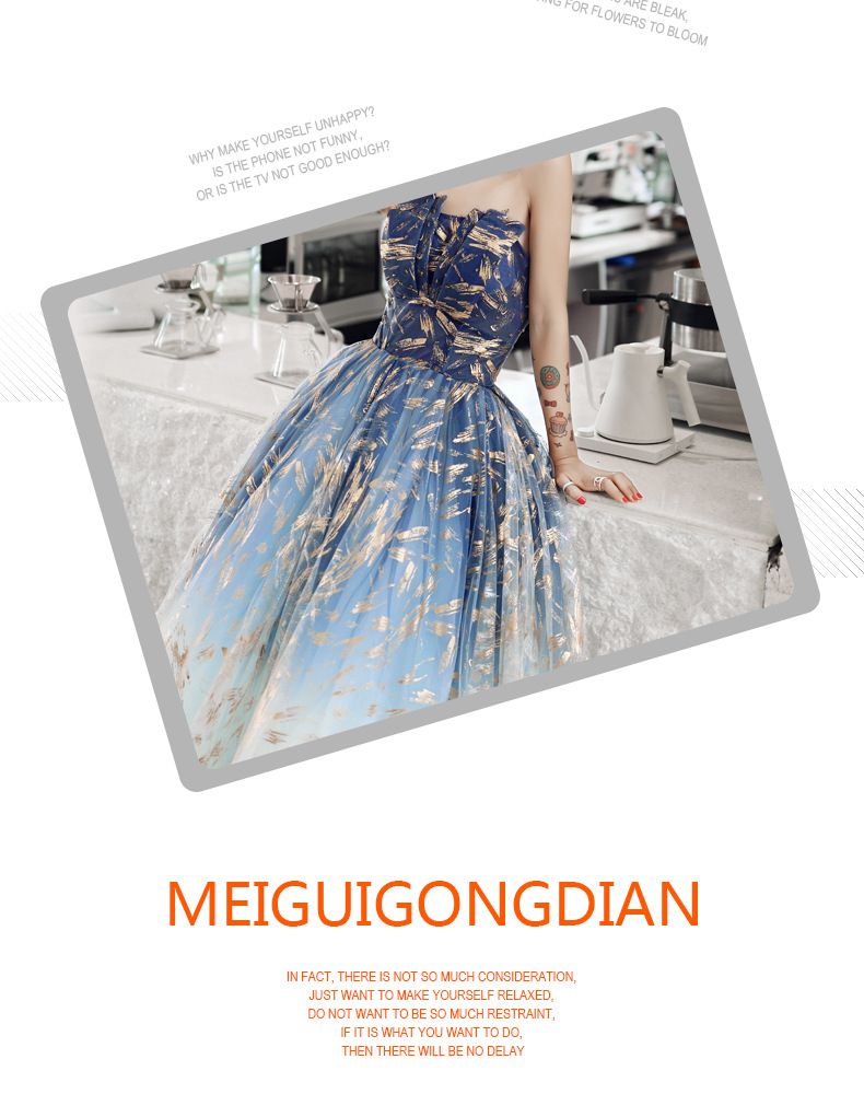 Strapless A-Line Gold Pattern Mesh Evening Gown