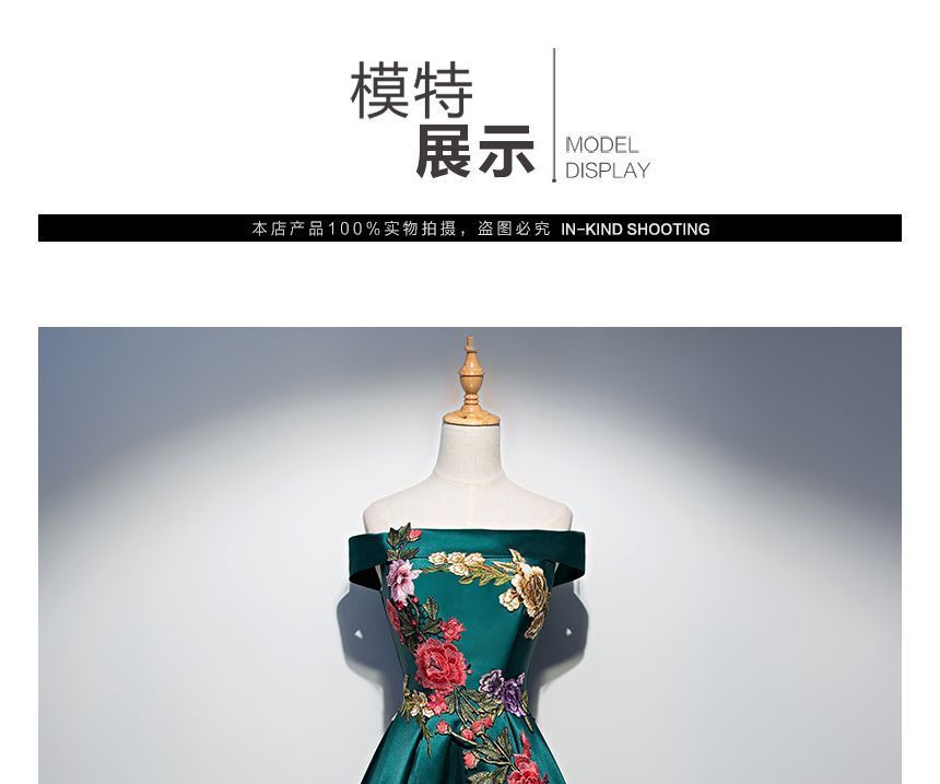 Off-Shoulder Embroidered A-Line Cocktail Dress / Evening Gown