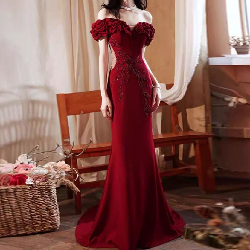 Off-Shoulder Floral Embroidered Mermaid Evening Gown (Various Designs)