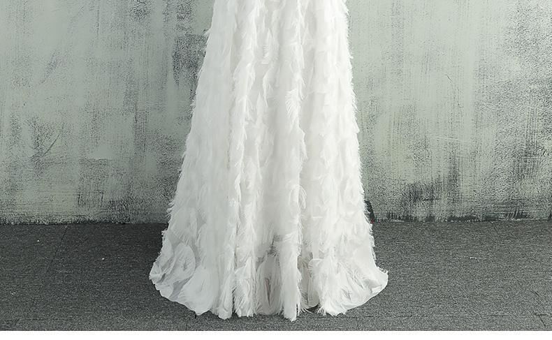 Off-Shoulder Plain Feather Accent A-Line Evening Gown