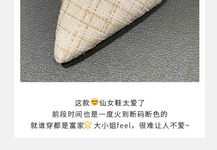 Pointed Plaid Slingback Kitten Heel Sandals
