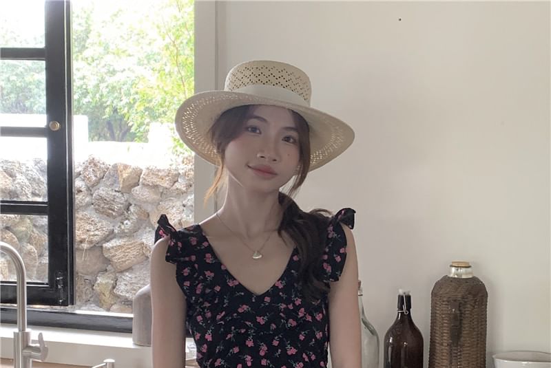 Ruffle Sleeveless V-Neck Floral Print Maxi A-Line Dress