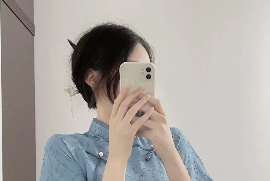 Short-Sleeve Lace Trim Midi Qipao