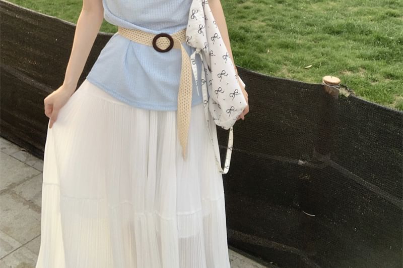 Skirt Waist Print Sweet Pleated High T-Shirt