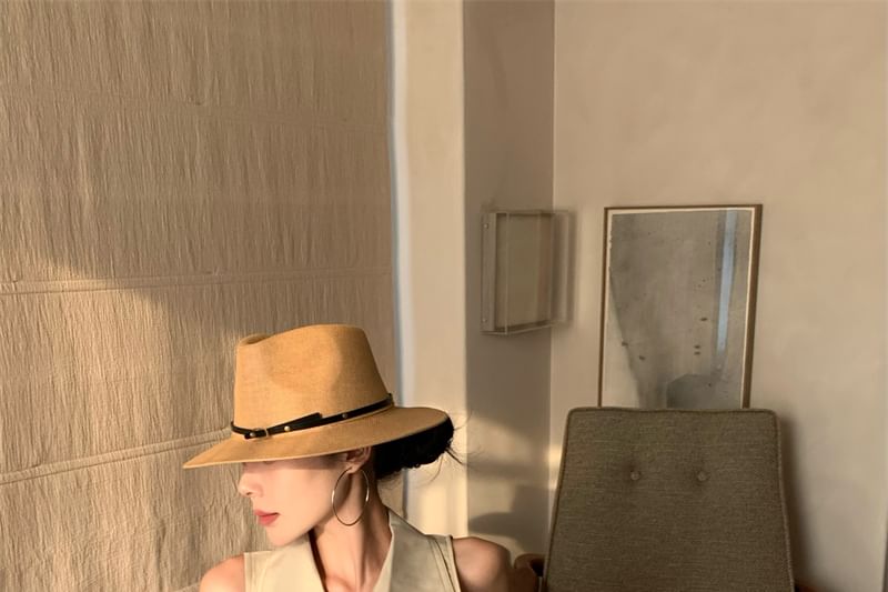 Sleeveless Collared Button-Up Slit Midi A-Line Dress