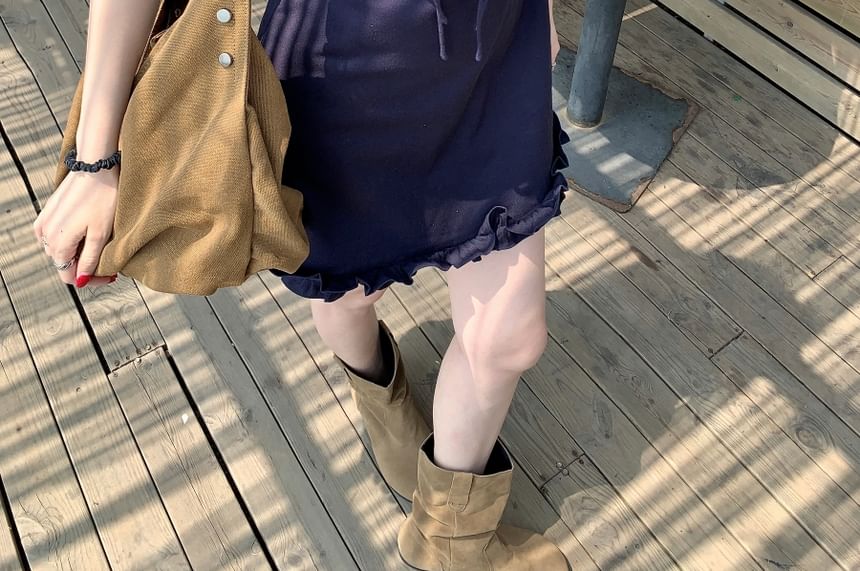 Sleeveless V-Neck Bow Lace Panel Mini A-Line Dress