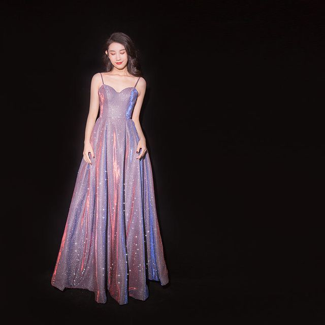 Spaghetti Strap Glitter Maxi Prom Dress