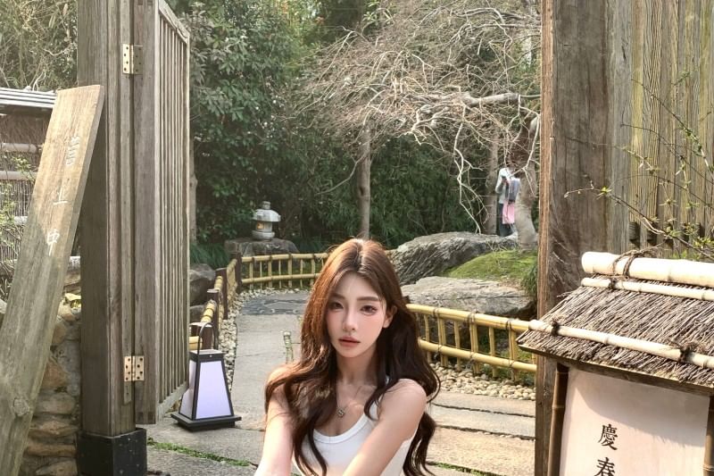 Spaghetti Strap Plain Midi A-Line Dress