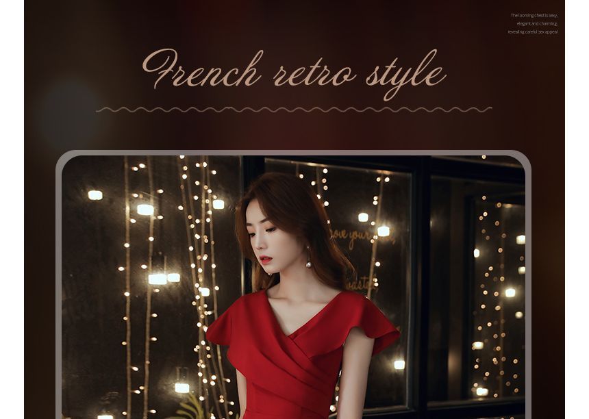 V-Neck Ruffle Sleeve Printed Asymmetrical A-Line Cocktail Dress