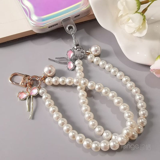Bow Faux Pearl Phone Strap with Lanyard Pad