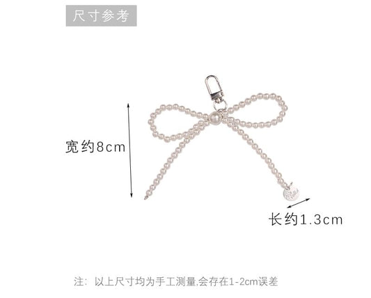 Bow Faux Pearl Resin Bag Charm Keyring Phone