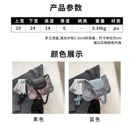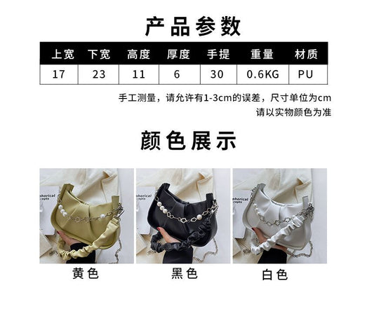 Chain Strap Ruched Faux Leather Crossbody Bag