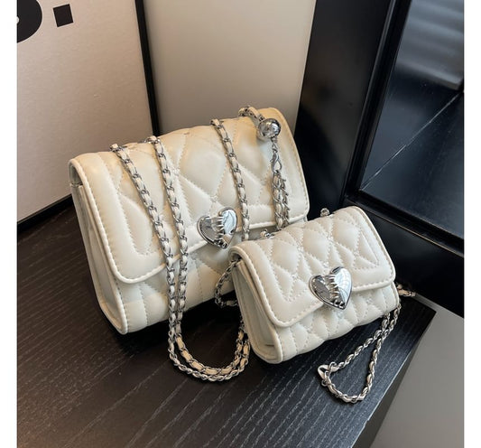 Heart Buckled Quilted Flap Crossbody Bag (Various Designs)