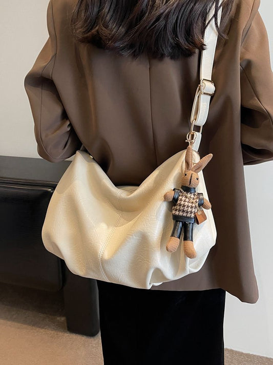 Set: Plain Faux Leather Crossbody Bag + Bag Charm